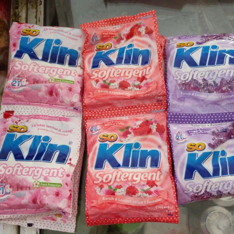 Soklin softergent 50 gram1 renteng isi 6 pcsada 3 varianungu, red dan s