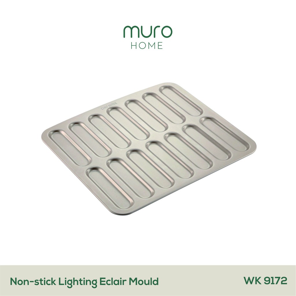 PERHATIAN :1. Disarankan beli Bubble Wrap, agar produk sangat aman.2. Oleskan Minyak / Margarin sedikit.3. Dilarang mencuci menggunakan busa besi karena dapat merusak permukaan coating.-Non Stick Eclair Pan Champage Gold 3 layer membuat pengalaman memasak anda menjadi lebih mudah..-Nama Produk : Non Stick Eclair Pan Champage GoldUkuran : 32.5 x 29 x 6 cmMaterial : Carbon SteelCoating : 3 Layer Non Stick Champagne Gold CoatingKetebalan : 0.9 mmCertification : LFGB , PFOA Free-Kelebihan produk Muro Home :1. Tiap lekukan bagian dalam loyang sangat tegas dan sempurna.2. Mudah dibersihkan.3. Bahan tebal, kokoh, dengan warna yang kekinian.4. Non-stick, namun boleh juga dioles lemak/ cairan oles loyang.-* Kami adalah Supplier FIRST HAND !* Kualitas terjamin 100% !* Permukaan halus dan bertekstur !-NOTE :1. UKURAN TERDAPAT DI FOTO PRODUK2. Gambar pada layar komputer menunjukkan warna dan ukuran yang mungkin saja nampak berbeda dengan produk aslinya. Hal ini disebabkan oleh banyak faktor seperti brightness, contrast, dan settingan lain pada monitor.3. Sebelum dikirim, kami sudah cek barang dipastikan dalam kondisi baik4. Jadi, kerusakan yg terjadi dlm pengiriman bukan tanggung jawab kami, harap klaim ke ekspedisi5. Kami sarankan Anda membeli asuransi pengiriman6. Baca Bio toko kami untuk info mengenai toko kami.7. Membeli = setuju dgn syarat kami :)-Kepuasan Pelanggan Adalah Hal Utama.Jika ada masalah dengan barang tolong jangan kasih bintang 1 , silahkan chat kami. Pasti kami Tukar atau jika stock habis kami refund! *syarat & ketentuan lihat di Bio