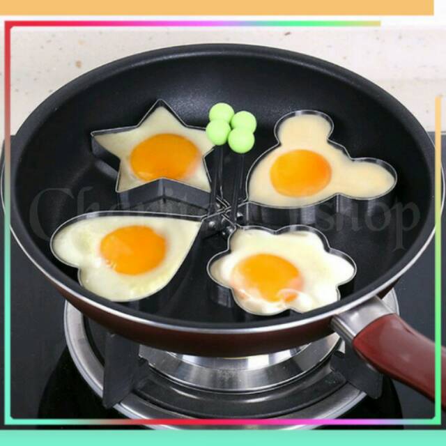 =} Rincian Produk : • Asal Produk : Impor• Material : Stainless Steel• Ukuran : Diameter 9cm.=} Cetakan telur stainless steel yang kreatif, pegangannya bisa ditekuk, bisa dilipat saat tidak digunakan. Kerangkanya tebal, menahan isi makanan dengan baik dan tidak mudah bocor. DIY sederhana, setiap hari bentuk telur dadar yang berbeda-beda menunggu