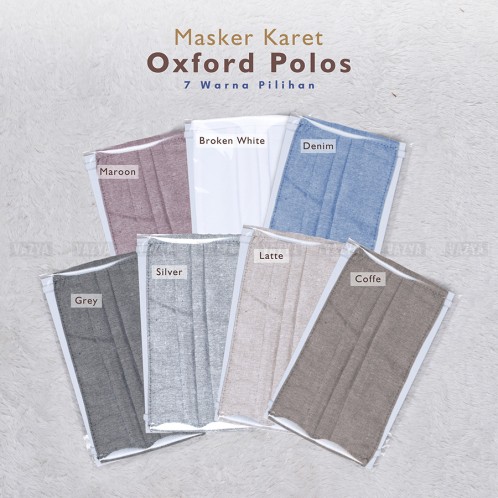 masker kain oxford tali karet non medis murah bisa di cuci di gunakan kembali reuseableMasker Karet Oxford Grade A ReusableBerat 20 gram- Bahan oxford adem, nyaman, tidak engap saat digunakan- Produk dikemas satuan dengan kertas tebal dan plastik jadi lebih higenis (gambar kedua)- Reusable, dapat di cuci berulang kali- Sebelum di pakai sebaiknya di cuci terlebih dahulu sebelum dipakai- Masker kain dapat menahan droplet 70%Ket : Gambar merupakan REAL PICTURE VAZYA by Gamis Store / GHB selain reseller dan dropshipper dilarang meng-copy gambar karena merk Vazya sudah teregistrasiKeterangan dan stok warna ready :- Grey : ready- Blue Denim : ready- Maroon : ready- Coffee : ready- Silver: ready- Broken White : ready- Latte : ready* Mohon tidak mengorder warna DI LUAR KATALOG, maupun warna yg sudah tercantum HABIS/COMING SOON, karena akan memperlambat pemrosesan* Kemiripan warna asli dengan foto sekitar 80-95% bergantung pada resolusi layar monitor, pencahayaan dan ketersediaan stok kain.* Wajib mencantumkan warna piihan dan warna cadangan untuk antisipasi bila warna utama stok habis, atau tuliskan BISA MENUNGGU READY STOCK, bila ingin tetap menunggu warna utama restok kembali (sekitar 1-3 hari)* Bila warna yang dipilih tidak ada, maka kami akan konfirmasi via Pesan, bila dalam waktu 1x24 jam tdk ada jawaban maka kami mengirimkan warna yang ter