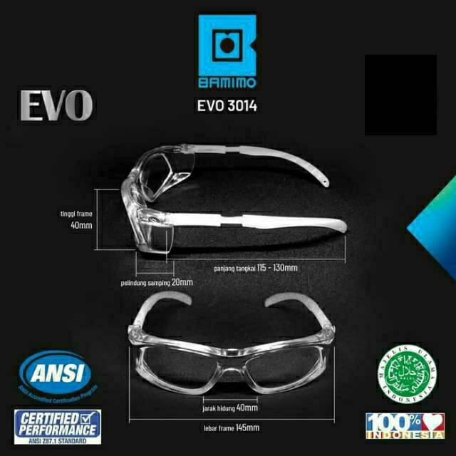 Name: Kacamata Safety (glasses) Bersertifikat Ansi & Halal Mui Bamimo Evo 3014 - Alat Pelindung Diri (apd)