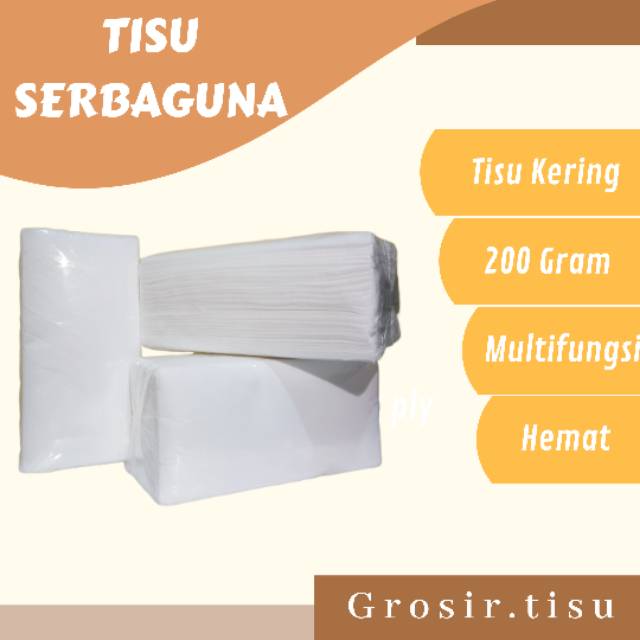 TISU SERBAGUNA/ TISU KOMPOR/ TISU KERING/ TISU DAPUR [200GRAM]Tisu kering multifungsi ini sangat cocok digunakan untuk kebutuhan rumah tangga.Tisu serbaguna ini merupakan produk unggulan kami, karena proses awal mulai dari pemotongan bahan baku hingga pengemasan dilakukan secara manual. Jadi untuk stok maupun kualitas pasti terbaik. Berat tisu 200Gram/pcs, ukurannya 20x20cm Tekstur tisu tebal kak, tidak mudah sobek dan daya serap air tinggi. Jadi bisa di cuci berkali kali dan digunakan ulang Tisu dikemas berupa lipatan yaa kak Ready stock tanpa PO Kami menjual dengan harga grosir yaa Sebelum dikirim barang sudah di cek, jadi no return no garansi Pengiriman H+ 1 transfer Produk yang kami jual berkualitas dengan harga terjangkauMau tanya, minta kepastian, atau pesan dengan request khusus bisa chat admin yaa kak!Kepuasan kalian kami utamakan------‐----------------------------------------------#tissue #tisu #tisuserbaguna #tisukering #tisupraktis #tisum